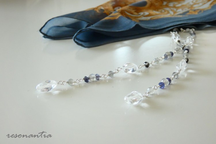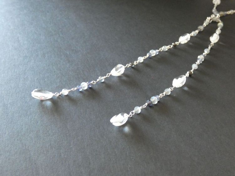 Labradorite, Iolite, Crystal and Vintage Beads & Sterling Silver Lariat Long Necklace