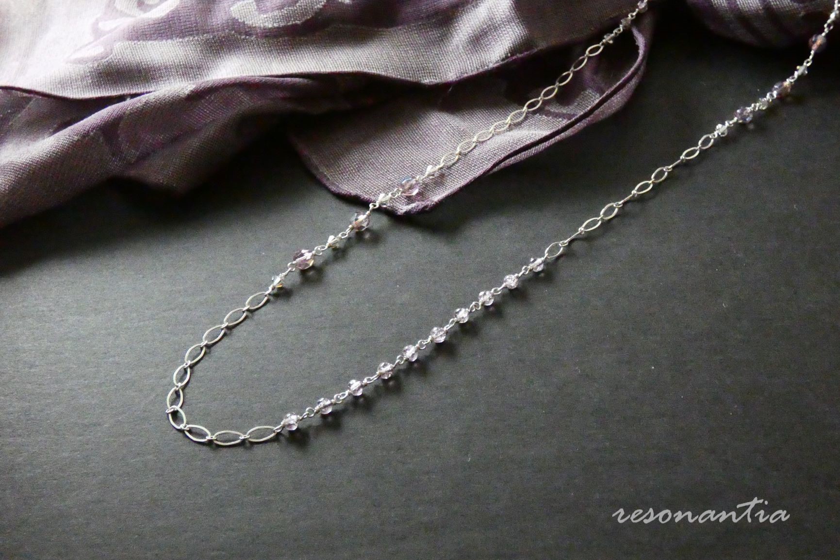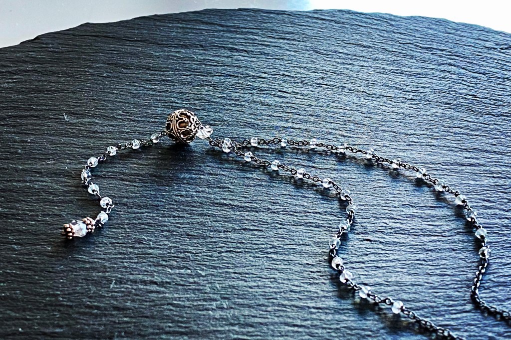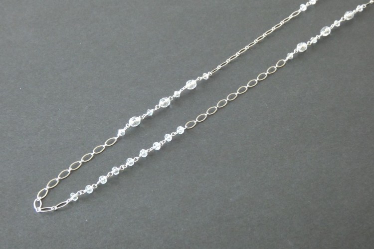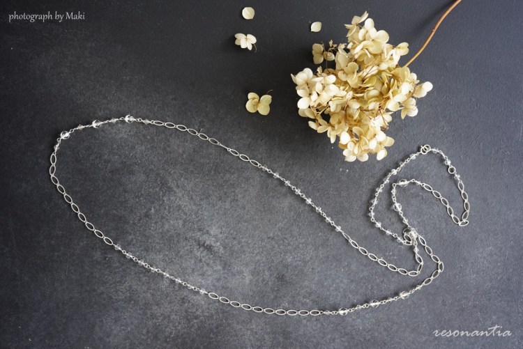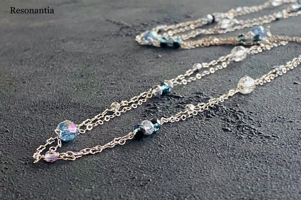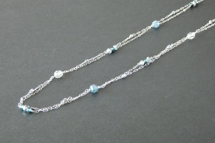 Vintage and Crystal Beads & Double Layered Sterling Silver Chain Long Necklace