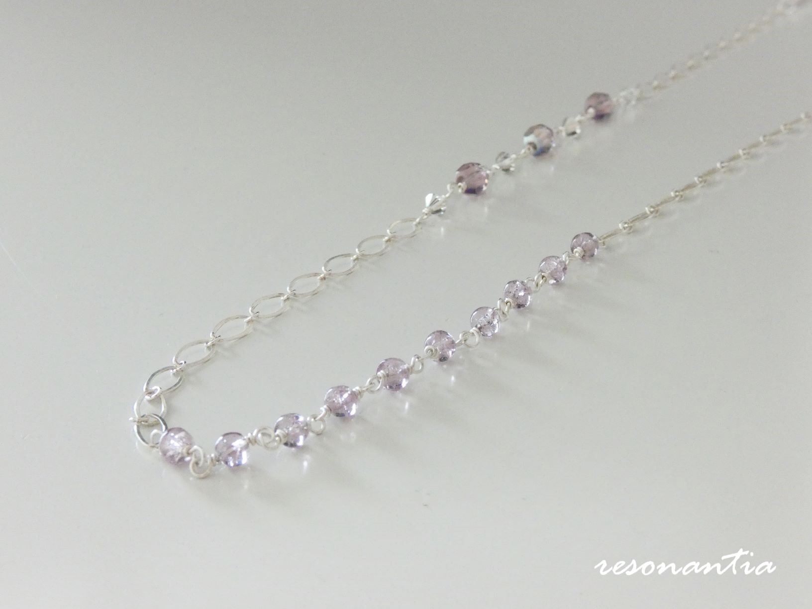 Vintage Silver Lined and Crystal Beads & Sterling Silver Chain Necklace