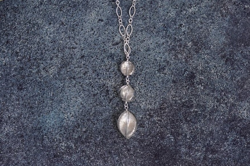 Venetian Silver Foiled Beads with Sterling Silver Textured Chain Long Necklace